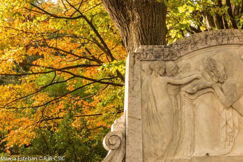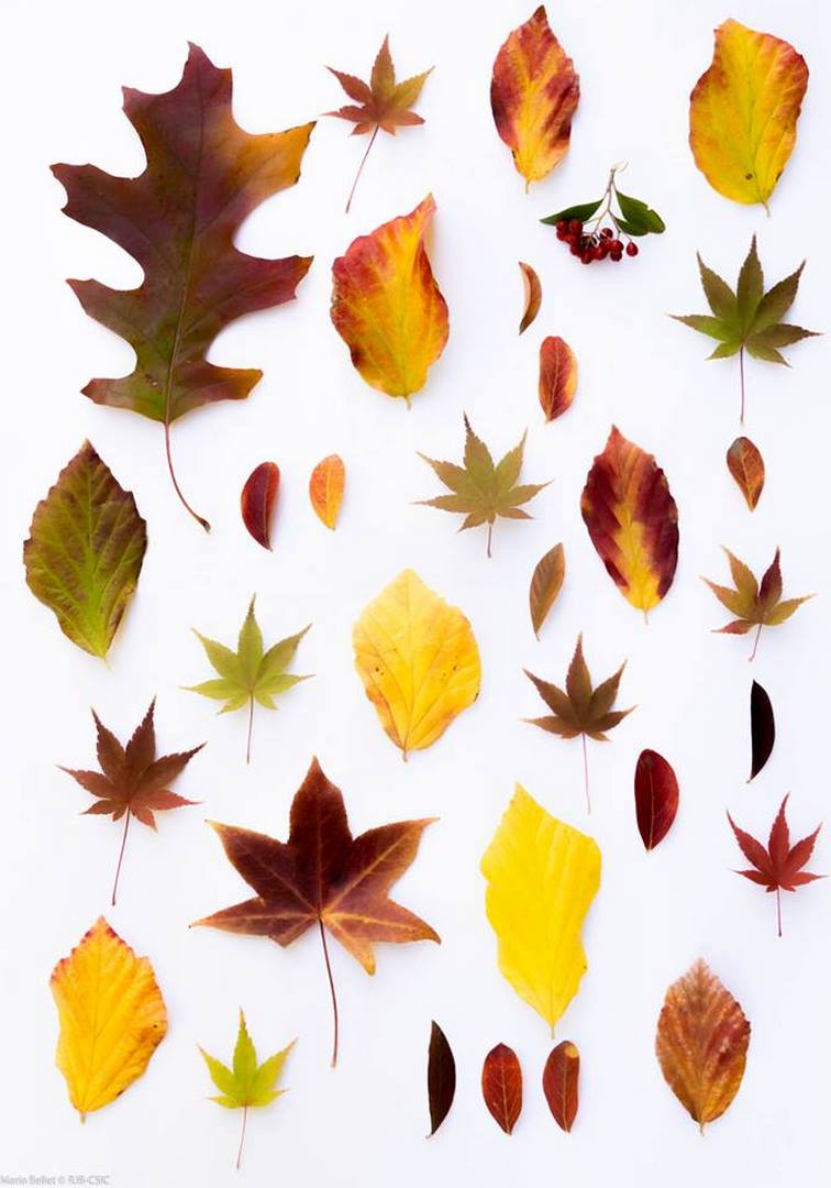 A veces, también juegan con algunas hojas y nos regalan fotos de las composiciones que se pueden permitir hacer, porque si hay algo que abunda en el Botánico de Madrid son árboles, y como no faltan los de hoja caduca, para ellos «el otoño es un juego de hojas».