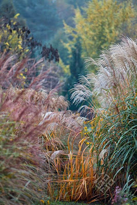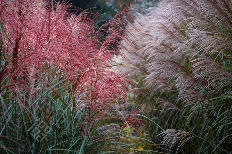 Para rellenar huecos y dar movimiento eligió diferentes gamas de gramíneas ornamentales, en concreto unas 400 variedades y entre ellas 200 variedades de Miscanthus sinensis. Hablamos de gramíneas que, en algún caso, alcanzan hasta 4,5 metros de altura, en ocasiones utilizadas para sustituir el efecto del bambú, por ser menos invasivas que éste. Mágico su brillo en verano y otoño, pero no menos sugerente la belleza de las tonalidades en crema o el efecto del hielo o la nieve sobre ellas durante el invierno.