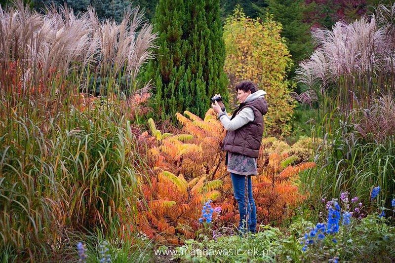 Unos días después, aquí estoy, en compañía de un trío de estrellas: Marzena Bąkowska, la propietaria del Arboretum Trojanów y dos magnificas fotógrafas que ya he mencionado en este blog en relación al concurso internacional de fotografía de jardín, IGPTOTY: Magda Wasiczek (ganadora de la competición y de la categoría The Beauty of Plants en la edición de este año) y Joanna Stoga (mención especial en la categoría Beautiful Gardens). Las tres de Polonia y las tres haciendo fotografías, posando, paseando por los jardines de Arboretum Trojanów, un jardín botánico privado dividido en dos. Uno en la parte baja, junto a un río y dos estanques. El otro en pendiente, constituye un jardín experimental formado básicamente por coníferas, gramíneas ornamentales y plantas vivaces.