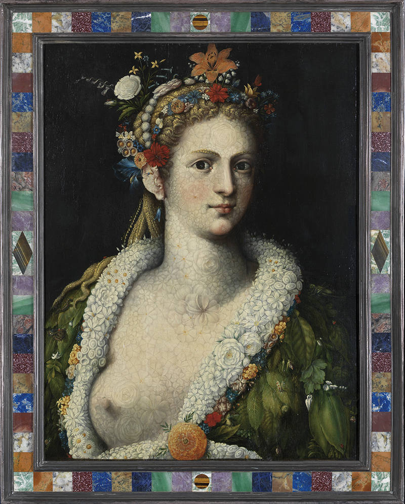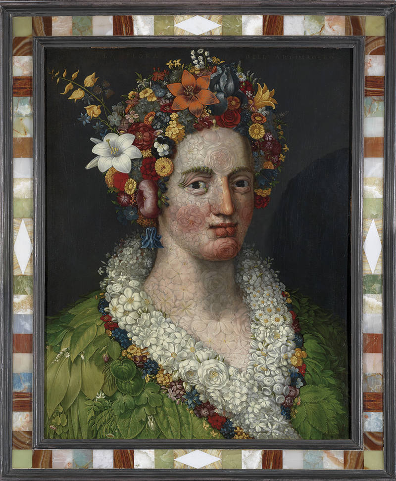 En las dos Floras se puede identificar cada una de las flores y plantas empleadas, pero vistas de lejos lo que se contemplaba era una bellísima mujer. Ambas pinturas se encuadran dentro de la noción de “imitación fantástica” y responden al encargo realizado por el emperador Rodolfo II, relacionadas a su vez con el retrato del propio monarca como Vertumno (1591), hoy en el Castillo Skokloster, Suecia.