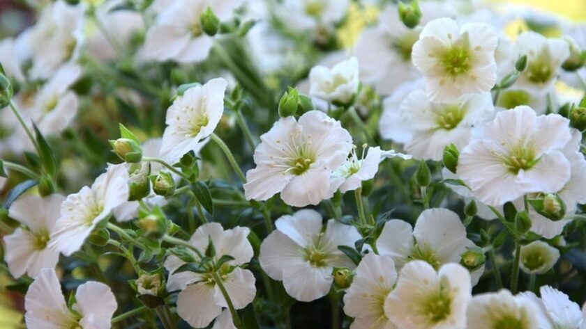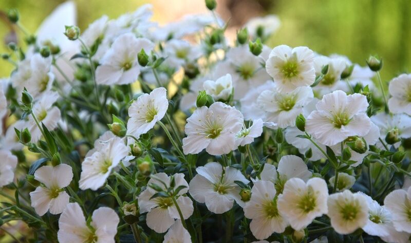 Arenaria montana, pequeña planta alpina de origen mediterráneo y tolerante a la sequía, es apreciada por las abundantes y deliciosas flores blancas que produce en primavera y verano, siendo especialmente atractiva cuando florece cubriendo muros.