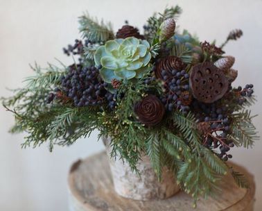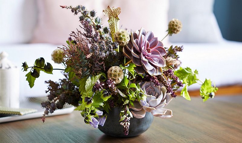 En algunos ejemplos apenas destaca su presencia, pero están ahí, casi camufladas y codeándose con las altivas rosas, dalias, alstroemerias, peonías e, incluso, orquídeas. De anémonas, girasoles o coloridas flores silvestres. Y ¿por qué no iba a camuflarse discretamente entre ellas alguna suculenta? Claro que sí, como lo hacen algunos frutos, secos y no tan secos, y vistosas cabezas de semillas. Como lo hacen el perejil y los cardos. El arte floral no desprecia ningún elemento vegetal, todo lo contrario. Pero, ciertamente (y lógicamente) son los artistas florales quienes mejor se manejan en esas cuestiones.