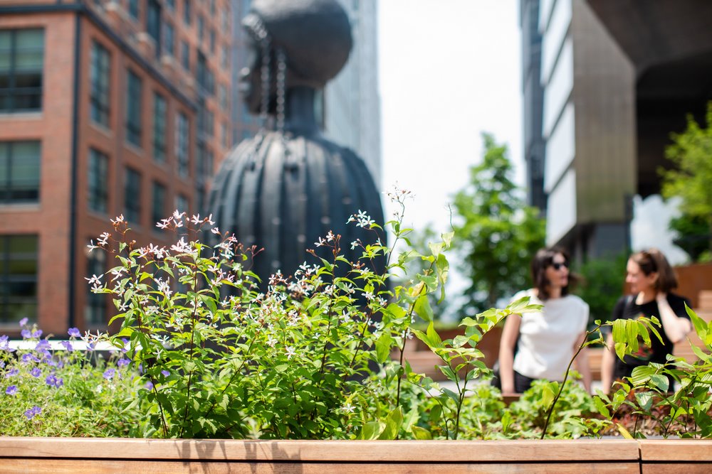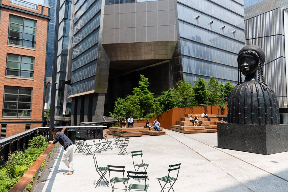 High Line Plint (The Spur) y escultura de Simone Leigh ‘Brick House’ al fondo • © Liz Ligon / High Line