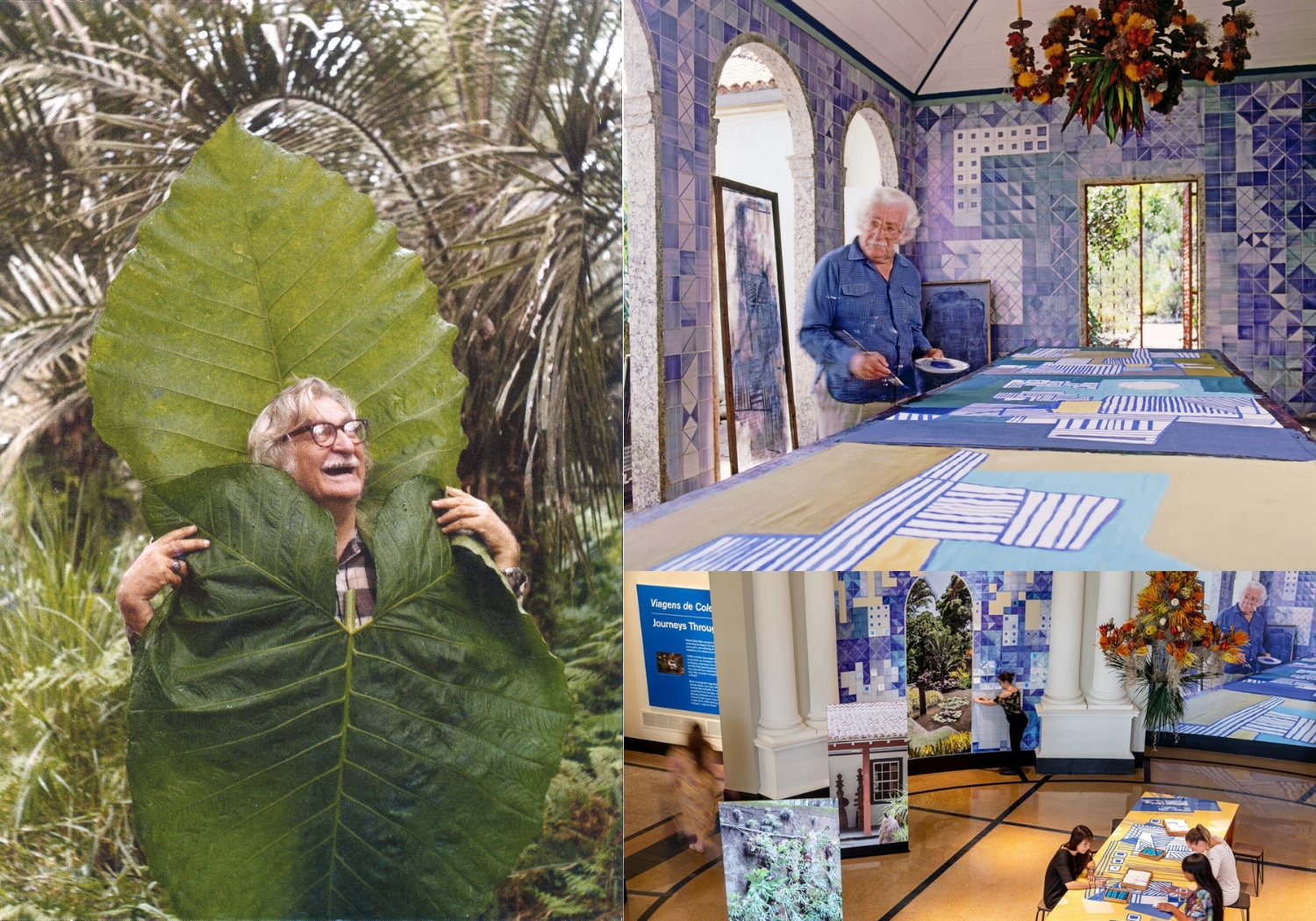 Roberto Burle Marx en una expedición botánica en Ecuaddor, 1974 (Foto: Luiz Knud Correia de Araújo, Archivo de Luiz Antonio Correia de Araújo) • Pintando en la logia de su casa en la decada de 1980 (Foto Claus Meyer/Tyba) • visitantes (NYBG)