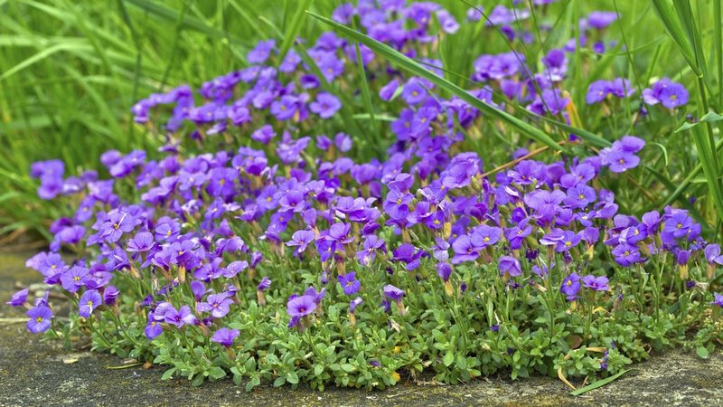 Son cortinas de color púrpura, azul o rosa que caen de una pared o simplemente cubren una ladera bien soleada. Plantas que dan color generosamente a los jardines de roca, que parecían haber perdido fuerza, pero que vuelven, porque cada planta cuenta, y cada una debe tener ese lugar donde crece y prospera sin demasiada intervención.