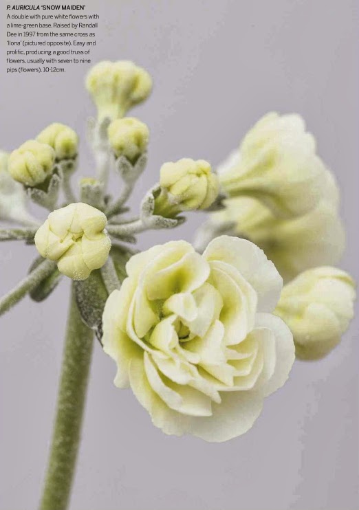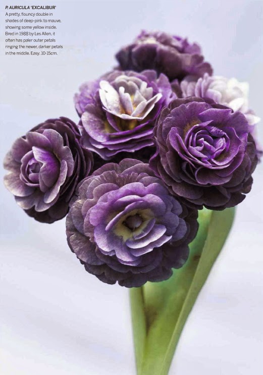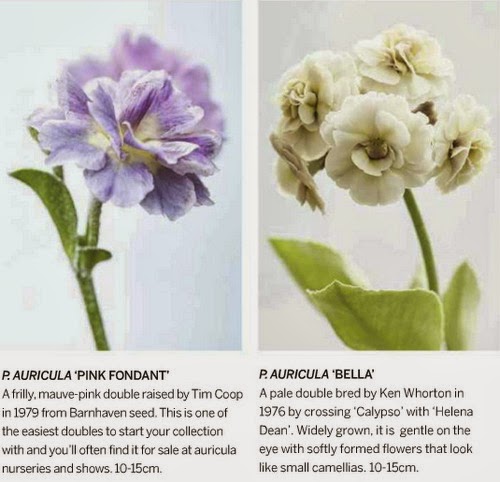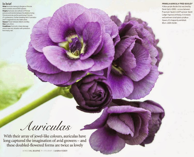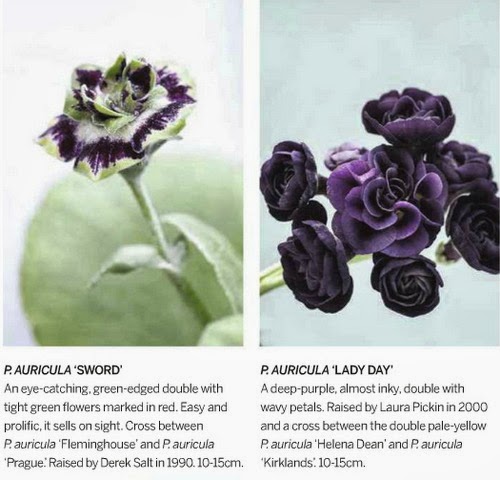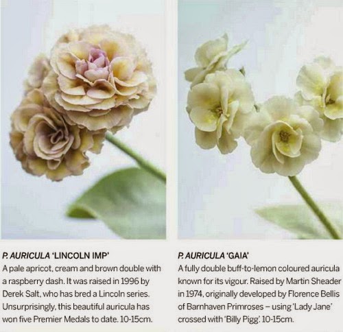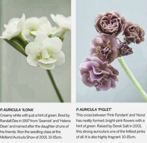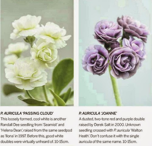 Las fotos que comparto se han publicado en el número de abril de la revista Gardens Illustrated. En ese artículo, Val Vourne nos muestra una selección que es digna de admirar. Todas dobles y absolutamente fascinantes. Os dejo con Auriculas de flor doble. Para gustos los colores (y las flores). Buen fin de semana.