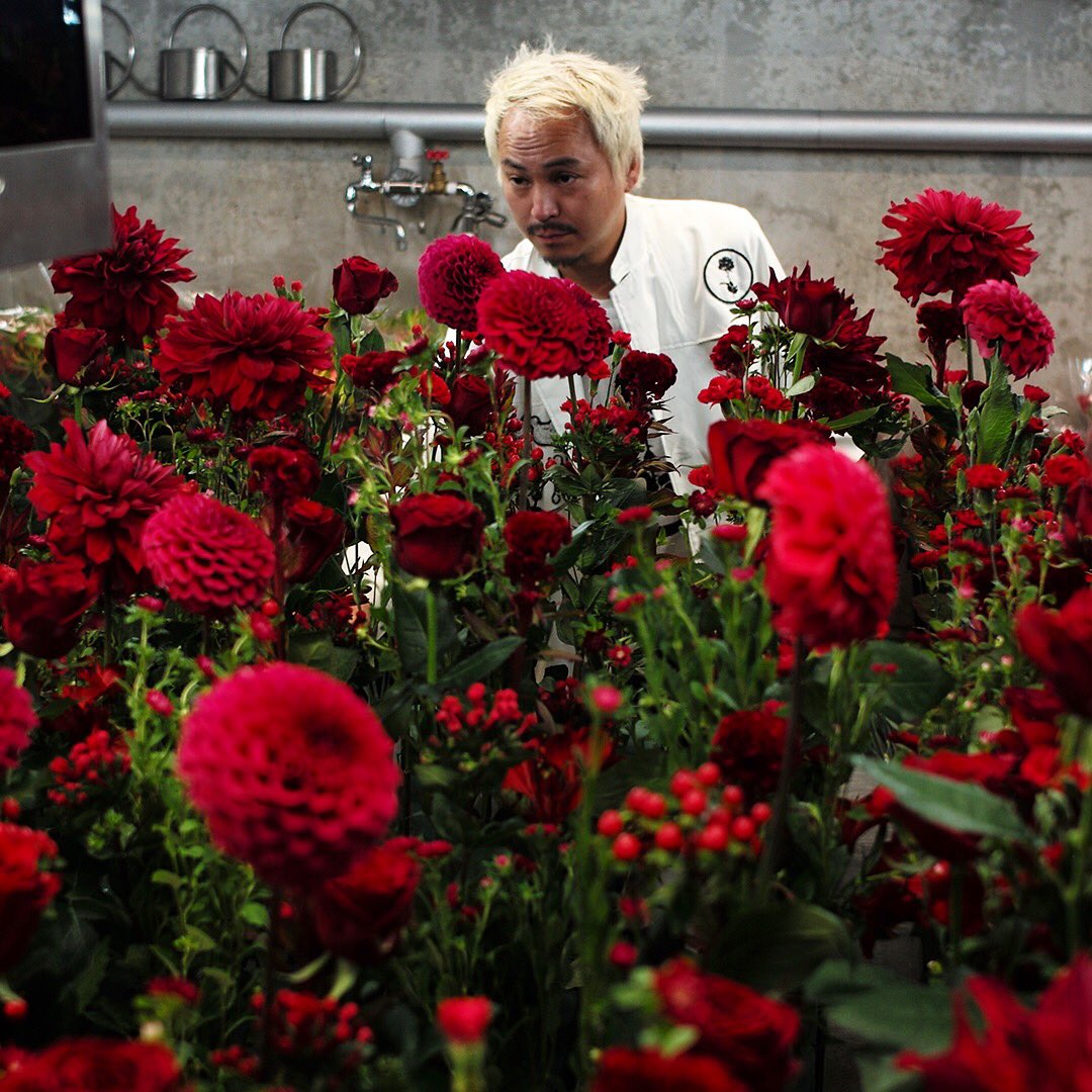 Azuma Makoto (Fukuoka Prefecture,1976) llegó a Tokio en 1997, donde debutó en una banda de rock. Las actividades en la banda las compaginaba con su trabajo como comerciante en Ota Market, uno de los mercados de flores y plantas ornamentales más grandes que hay en Japón. Conectó con las flores, eso ya lo hemos descubierto, y su atracción hacia ellas le llevo al siguiente trabajo, en esta ocasión como encargado de una floristería en un supermercado de Azabu-Juban. Allí trabajó desde 1999 hasta que abrió su taller, Jardins des Fleurs, en 2001.