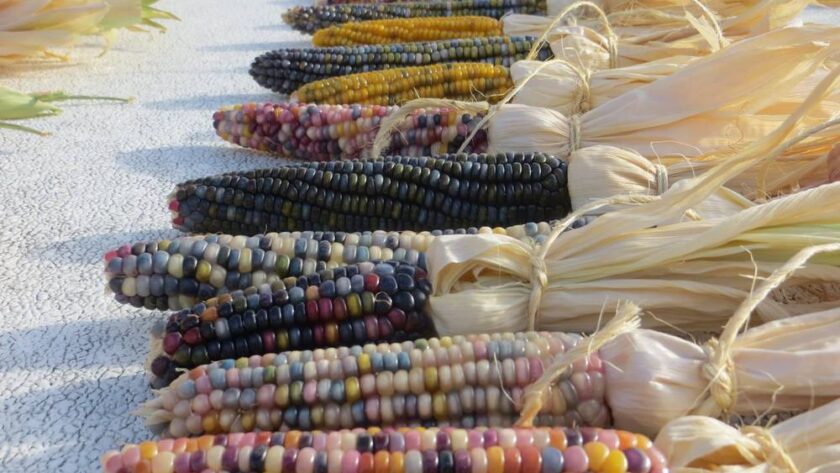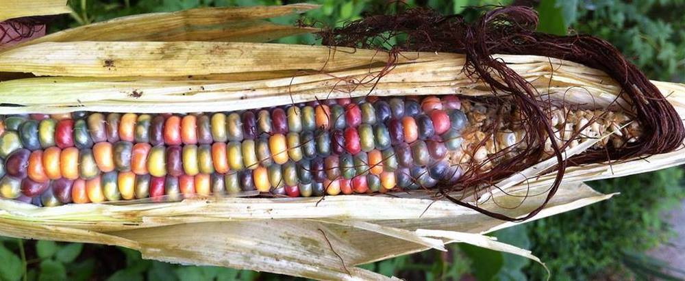 Siempre despierta nuestra admiración ver esas mazorcas multicolores, un fenómeno que nada tiene que ver con retoques fotográficos. Si queremos buscar una explicación a esa maravilla, tenemos que conocer la genética del maíz o, lo que es lo mismo, descubrir y entender el trabajo de la doctora Barbara McClintock, científica estadounidense que realizó sus estudios genéticos fundamentalmente con ese cereal, practicando numerosas hibridaciones entre diferentes variedades, lo que le permitió asimismo describir la historia evolutiva y origen de esta planta.
