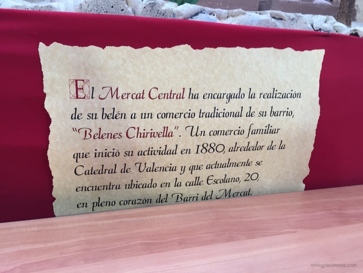 Del Mercado Central de Valencia hay mucho que hablar, una joya arquitectónica llena de tesoros gastronómicos, pero lo dejaré para otro día. Hoy no quería robarle protagonismo a la belleza de un belén que la dirección del Mercado Central de Valencia encargó a un comercio tradicional de su barrio, “Belenes Chirivella”, un comercio familiar que inició su actividad en 1880, alrededor de la Catedral de Valencia, y que actualmente se encuentra ubicado en el Barri del Mercat.