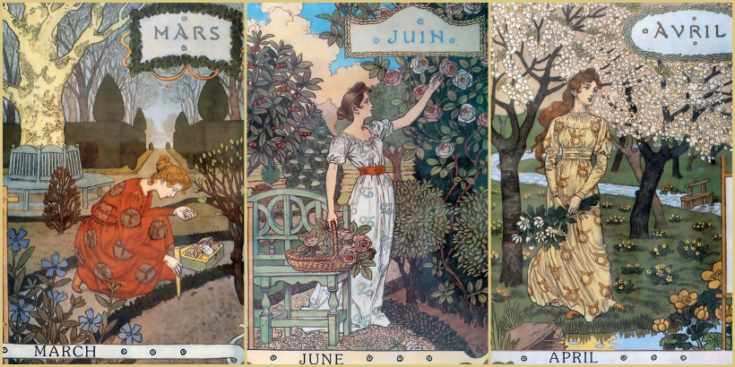 No sé si os he convencido, pero la cuestión es que tenía ganas «guardar en el blog» las 12 composiciones grabadas en madera e impresas en cromatografía, realizadas por Grasset en 1896. Eugène Samuel Grasset (1845 – 1917) fue un artista decorativo francosuizo que trabajó en París en diferentes campos del diseño creativo durante la llamada Belle Époque y está considerado como un pionero en el diseño Art Nouveau.