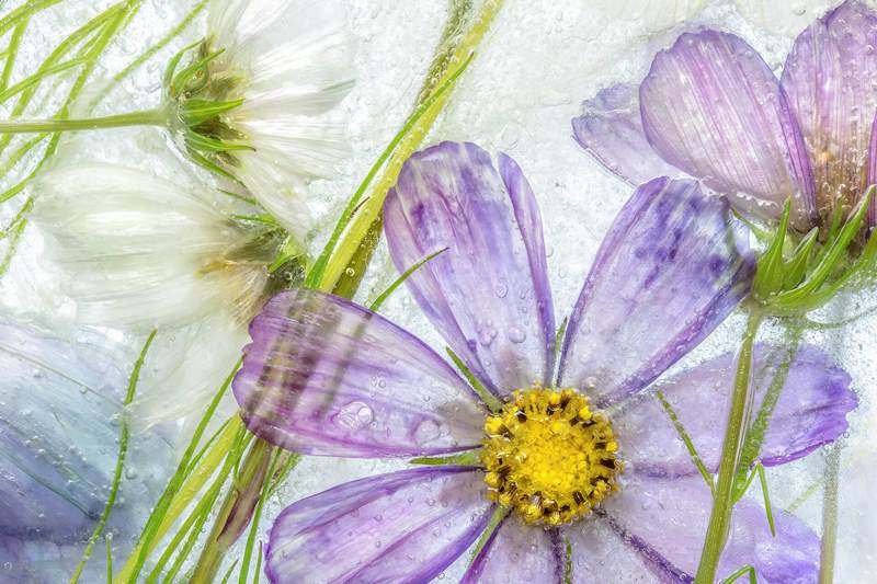 Tiene una espectacular colección de fotografías de flora congelada que recuerda mucho al trabajo de Debbie Hartley que compartí hace años (ver Flora fría, muy fría, congelada).
