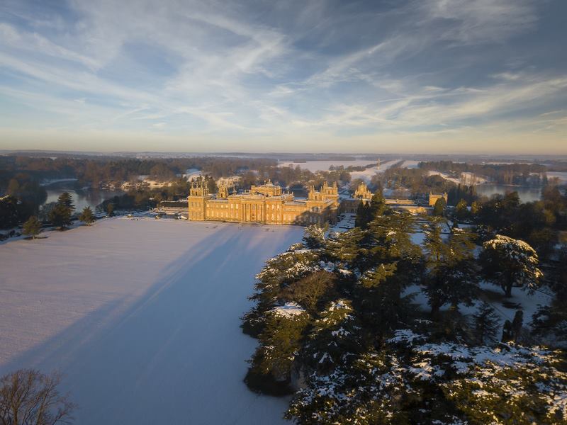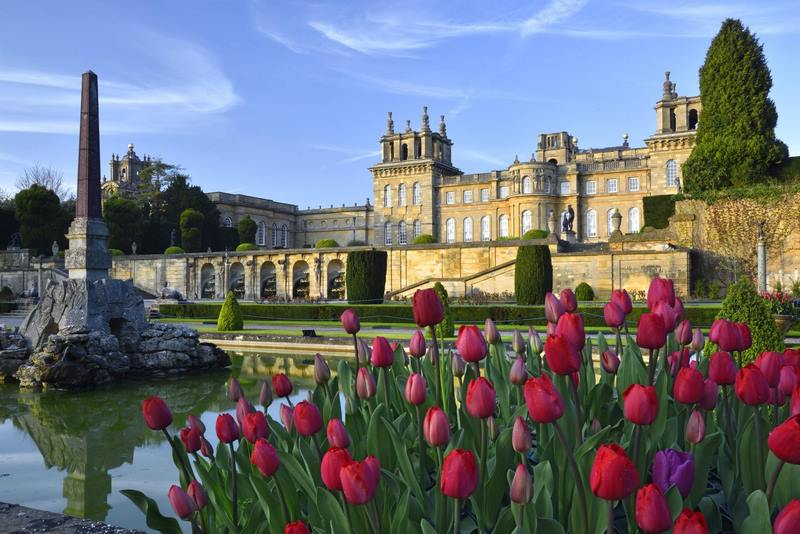 Blenheim Palace se construyó entre 1705 y 1722 en el lugar que previamente había ocupado el Palacio de Woodstock, propiedad que le fue dada a John Churchil, primer duque de Marlborough, en reconocimiento por la victoria que consiguió sobre las tropas francesas y bávaras en 1704. El palacio fue el lugar de nacimiento el primer ministro británico Winston Churchill (1874-1965)