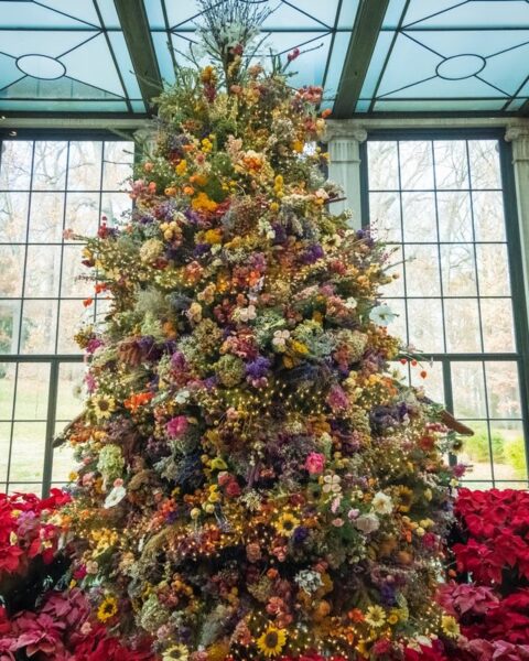 El icónico árbol de Navidad decorado con flores secas en el Museo, Jardín y Biblioteca de Winterthur 15/12/2021