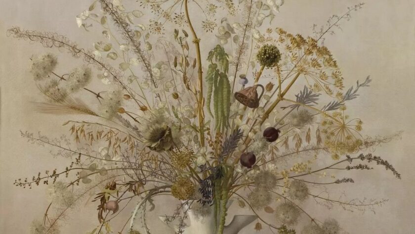 Pero vendrían más bodegones de flores de Gluck inspirados en las composiciones de Constance Spry, como Lilac and Guelder Rose, un ramo impresionantemente grande de lilas blancas combinado con flores de Viburnum opulus y hojas en un jarrón alto; o The Devil’s Altar, una pintura que Gluck realizó en 1932 y ahora se conserva en la Art Gallery Brighton, que representa las características y delicadas flores blancas que cuelgan de los tallos de una Datura, una de las plantas favoritas de Constance Spry.