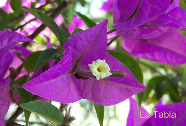 Pero hace tres o cuatro años empezó a debilitarse y el bambú, que avanza sin tesón por todo el jardín,  ha ido comiéndole terreno. La buganvilla comenzó, hace menos de un mes, a brotar tímidamente.  Y nada me gustaría más que disfrutar otro verano de ella.
