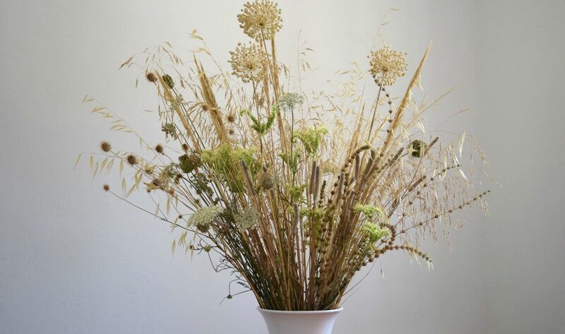 Toda esa definición “de carrerilla” la he copiado de Wikipedia, porque hace tanto calor que mi cerebro no es capaz de articular palabra. Pero quería presumir un poco del ramo que hice ayer, que es una buena prueba de que el campo ya no recuerda aquellas lluvias de otoño e invierno, porque las reservas están más que consumidas. No obstante, es julio y lo cierto es que ya es habitual que el paisaje por estos lares sea así, dorado, muy dorado. En esta ocasión se cuela el luminoso verde claro de las inflorescencias del Sedum sediforme y … y ya está, algo de blanco, y oro por aquí y por allá.