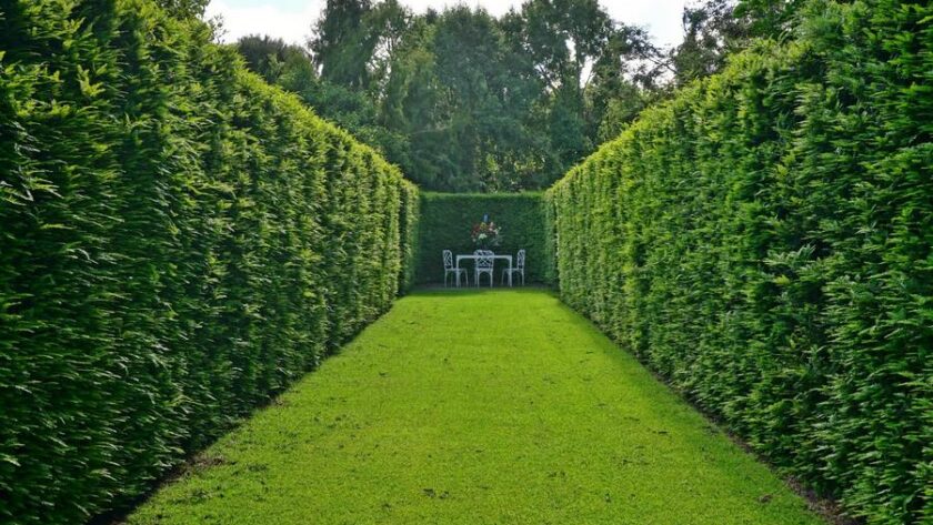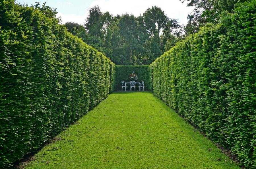 Seto de Podocarpus totara en Broadfield Garden, Nueva Zelanda