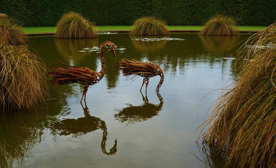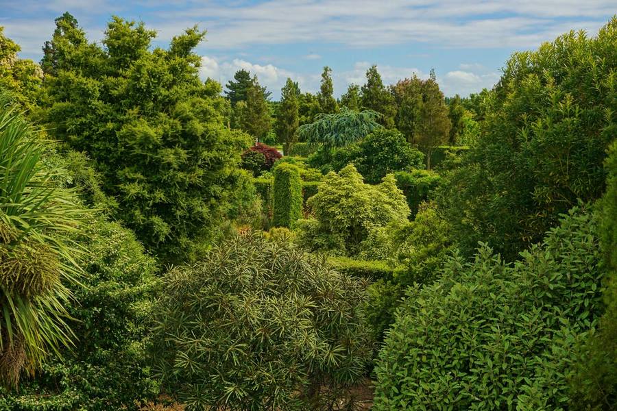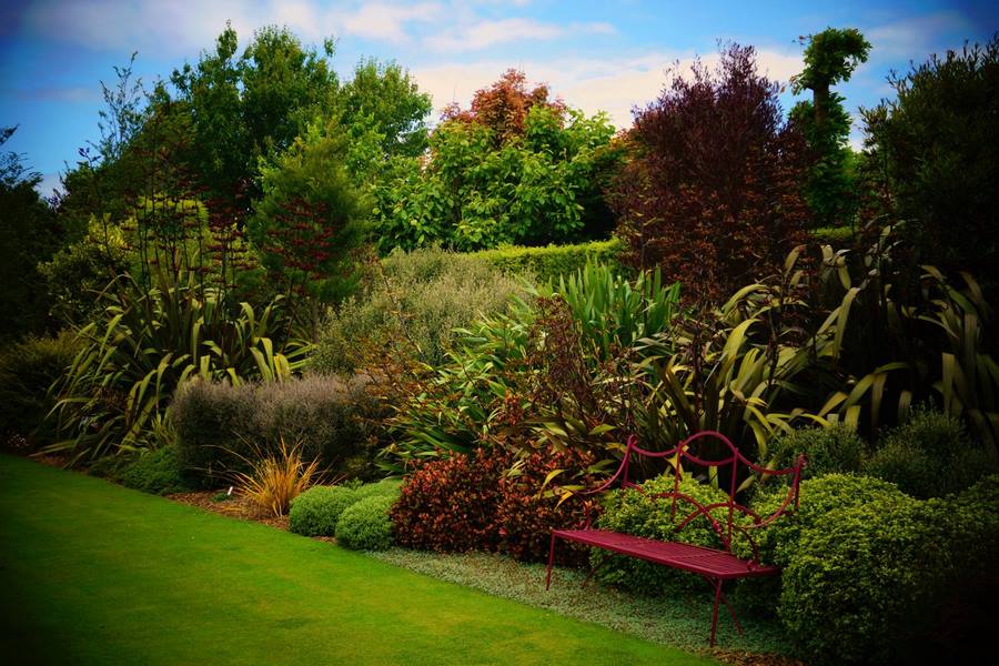 El jardín también tiene plantado un gran bosque de hayas, un canal de 140 metros que aparenta no tener fin, un estanque formal acentuado por gramíneas acuáticas nativas; y una rosaleda con rosas cultivadas criadas en ese país. Todo está enmarcado en 1,5 km de setos de Podocarpus totara, una especie de podocarpo endémica de Nueva Zelanda.