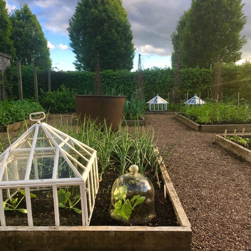 El estanque de sauces en el jardín amurallado (Walled Garden) se alimenta de la escorrentía de los extensos techos. El seto de sauce se corta cada invierno y puede crecer hasta 2,7 metros durante los meses de verano. A ambos lados del estanque y en la terraza superior se encuentran los únicos «macizos de flores» reales en el jardín. Debajo se encuentran verduras y hortalizas, frutas, flores para cortar y un invernadero.