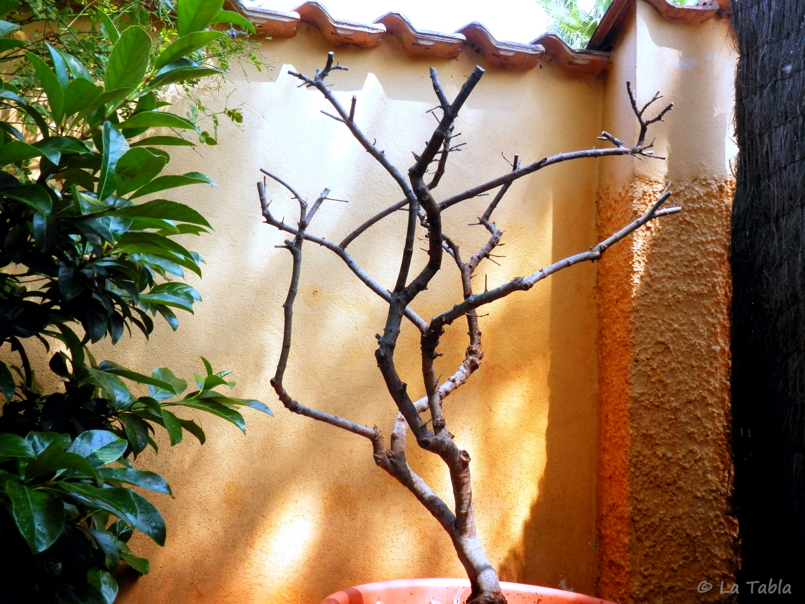 Nunca dejas de sorprenderte, nunca hay que tirar la toalla y un sinfín de frases hechas son las que vienen a mi mente cada vez que miro esos diminutos brotes de gardenia. Un pequeño árbol de gardenia, hecho a partir de un esqueje entutorado y al que se le van suprimiendo todos los brotes inferiores. Ahora tiene doce años. Este invierno ya pedía auxilio y pensé, en primavera me pondré a ello.