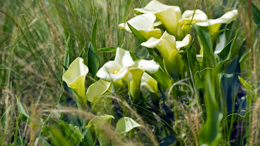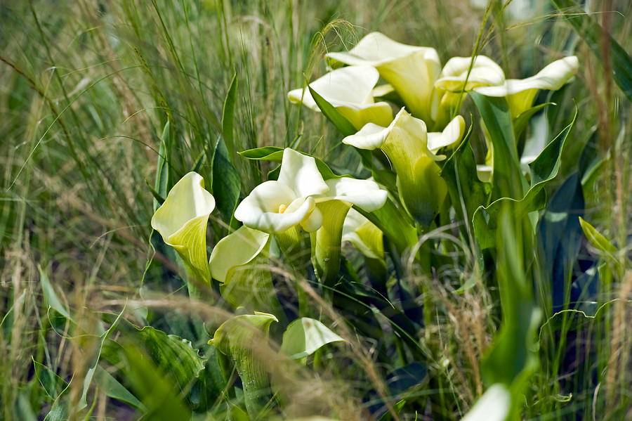 La cala es nativa de Sudáfrica, y allí crece en depresiones pantanosas donde tiene que tolerar períodos húmedos y secos. Esto explica por qué las calas son plantas tan fuertes.