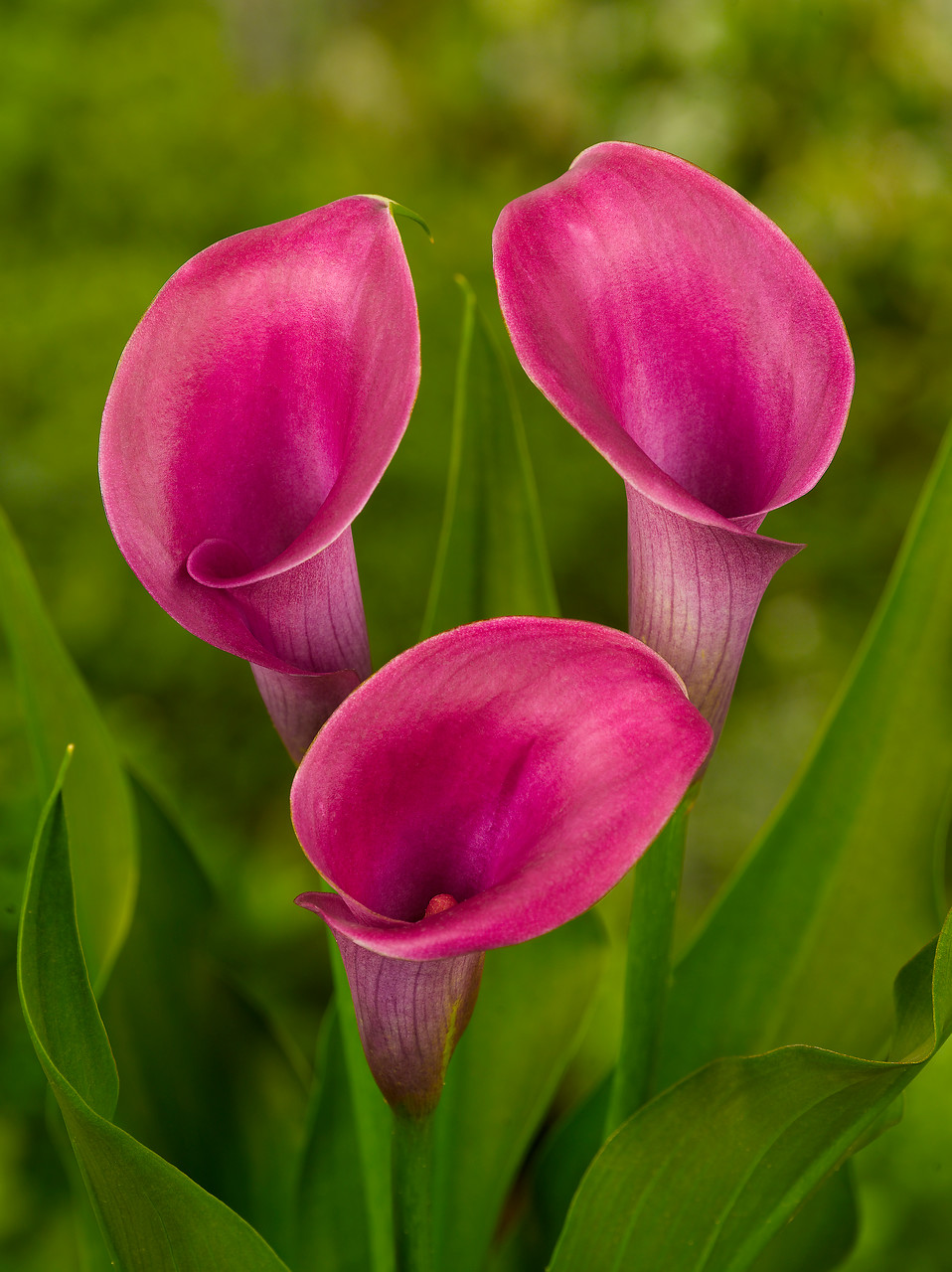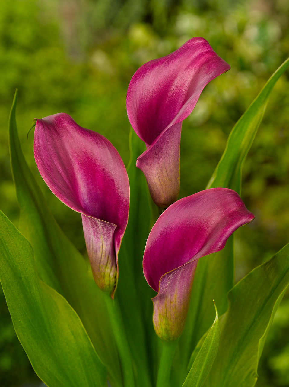 Lo que vemos como una flor, en realidad es una espata en forma de trompeta bellamente coloreada.Esas espatas pueden ser de colores que van desde el blanco puro al morado oscuro casi negro. Entre medias se encuentra los colores típicos de un verano candente, hablo de colores que van del amarillo dorado a todos los colores propios de una deslumbrante puesta de sol, como el naranja intenso, el rojo burdeos, incluso el rosa intenso. Algunas incluso tienen dos colores. Sus flores reales son diminutas y están ubicadas en el espádice escondido dentro de esta espata.