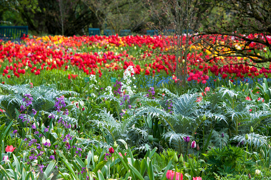 Este suele ser el caso cuando se utilizan los bulbos de flor para obtener un efecto de bloque de color, como arriates de floración secuencial con crocus y tulipanes, grandes manchas de Muscari, o largas cintas de narcisos de copa grande. Para conseguir este efecto se utilizan sobre todo bulbos de flor de colores vivos (rojo, amarillo, azul).