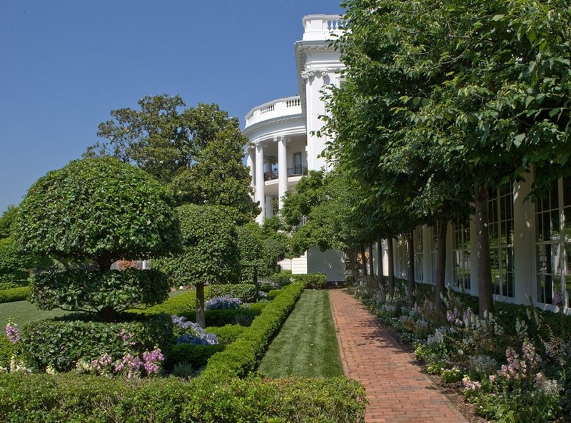 El jardín, de aproximadamente 38 metros de largo y 18 metros de ancho, absorbió cantidades de plantas. Entre los arbustos, hay que destacar el boj ‘Green Pillow’ suministrado por Hohman, un extraordinario plantador, especializado en árboles y arbustos inusuales. Ese jardín se convirtió en el escenario favorito para ocasiones como la presentación, el 10 de octubre de 1963, de los siete astronautas del Proyecto Mercury.