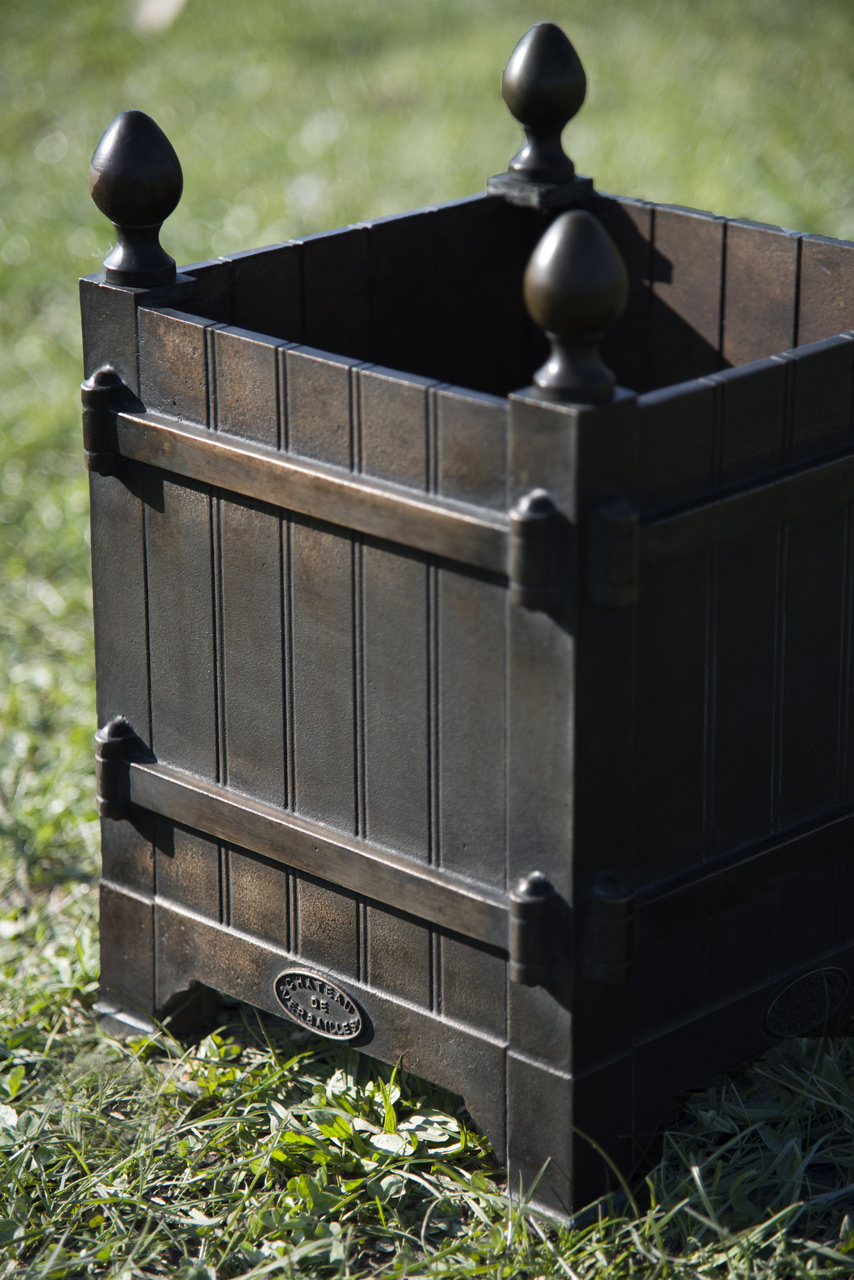 El modelo se ha copiado durante siglos y su diseño básico se ha reinventado en diferentes acabados y materiales. Pero existe una firma francesa, Jardins du Roi Soleil, proveedor oficial del Palacio de Versalles, que fabrica una adaptación patentada de esas jardineras creadas por André Le Nôtre en el siglo XVII, y lo hacen bajo licencia de marca exclusiva. Son las llamadas cajas de naranjas «Château de Versailles ®».