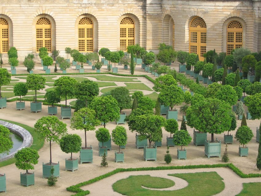 | Macetas con árboles en el Parterre de la Orangerie, Jardines de Versalles •• Fort Royal |