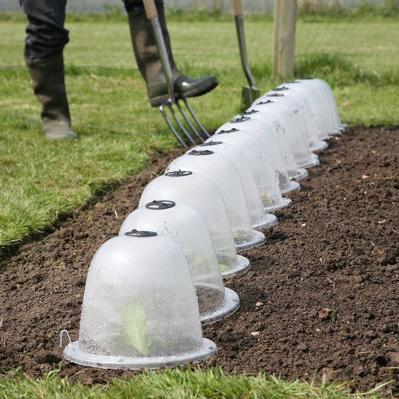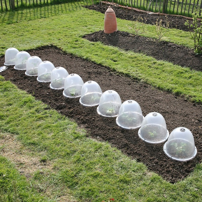 No siempre son asequibles y cuando no buscamos el aspecto estético, sino meramente práctico, podemos tener en cuenta que existen en el mercado campanas hechas de plástico resistente que simulan el diseño de las campanas de cristal. Estas versiones modernas de campanas individuales no son tan elegantes como las tradicionales campanas de vidrio, sin embargo, algunas ofrecen el mismo o un mejor grado de protección contra las heladas, están hechas de materiales livianos y son más fáciles de ventilar. incluso llevan una tapa ventilación en la parte superior que facilitan el cultivo, según las necesidades en cada momento y, algunas de ellas, puntos de anclaje al suelo.