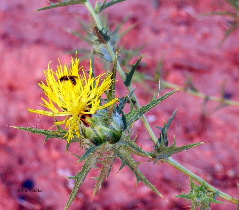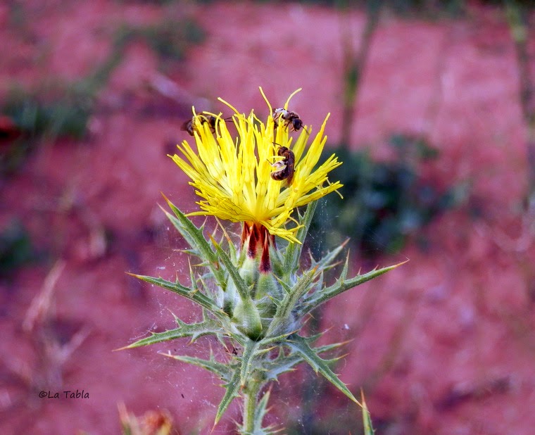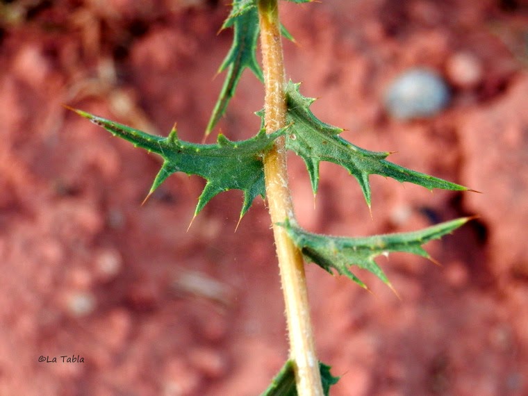 Una asterácea más, pero espinosa, mucho, y en las hojas y en las brácteas que no en el tallo, blanquecino y muy ramificado.
