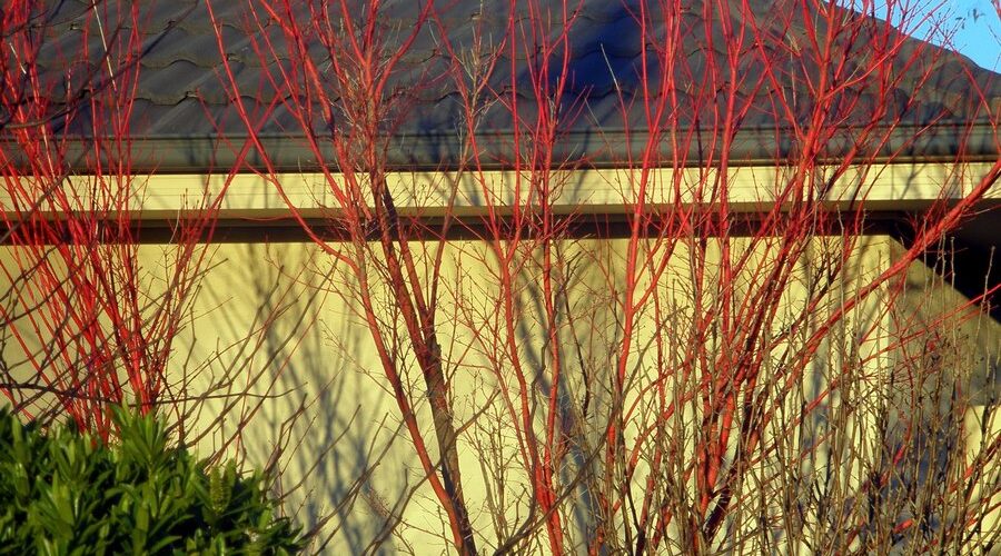 Algunas variedades de arces japoneses trasladan su interés a los tallos y ramas, que exhiben su resplandeciente corteza roja en invierno