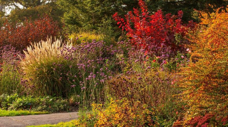 El comienzo del otoño regala color al jardín, un color que la luz del atardecer suele potenciar en jardines con plantación de herbáceas