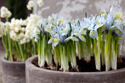 Los iris enanos de floración invernal son plantas bulbosas de poca altura, capaces de iluminar con sus flores el jardín o terraza en los días más fríos del año