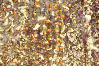 Inflorescencias de amaranto (Amaranthus cruentus); árbol de las pelucas (Cotinus coggygria) y zanahoria (Daucus Carota) …