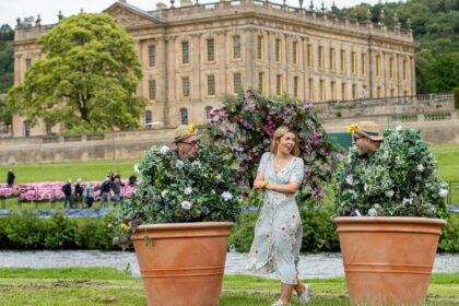 Macetas con flores y sombrillas florales diseñadas por Jonathan Mossley • Chatsworth Flower Show 2019 …