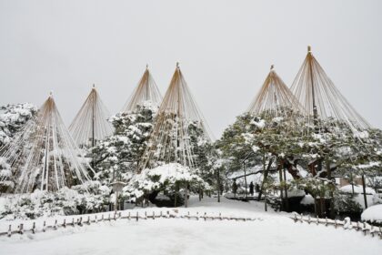 Yukitsuri en Pino Karasaki (Pinus thunbergii) para proteger del peso de la nieve •• Flickr No …