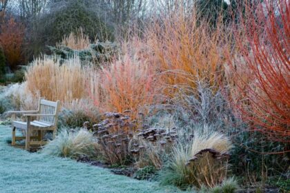 El color, contraste y acento vertical son algunas de las características que destacan en el jardín de invierno de Bressingham Gardens