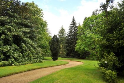 Un parque con senderos que cruzan lagos, grutas y bulliciosas cascadas, rodeado de vegetación exuberante y a la sombra de árboles centenarios