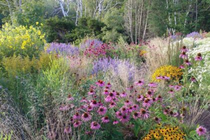 Jardín de muestra con borduras de plantas vivaces ideado para inspirar y aconsejar a quienes lo visitan en el diseño, plantación y cuidado de su jardín.