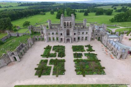 Vista aérea de las ruinas de Lowther Castle y sus actuales jardines (diseño Dan Pearson) …