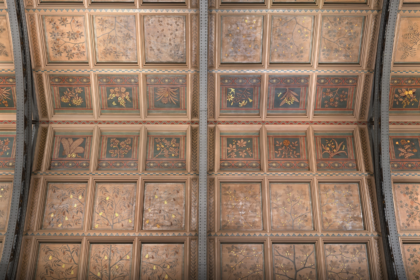 Paneles ilustrados en la bóveda de Hintze Hall •• © The Trustees of The Natural History Museum, …