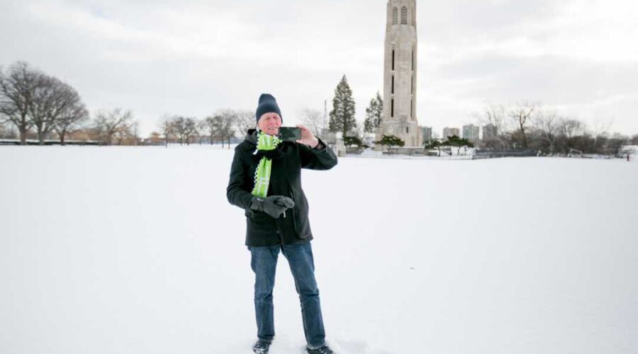 Piet Oudolf frente a Nancy Brown Peace Carrillon en Belle Isle Park (Detroit) •• Anthony Lanzilote …