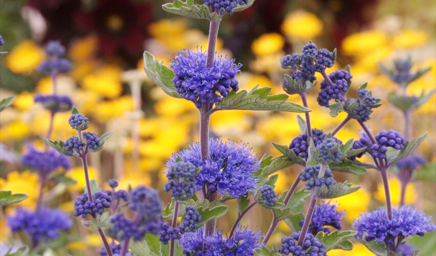 Caryopteris es un pequño arbusto de flores azules otoñales, apropiado para jardines pequeños, y perfecto para el jardín seco por su tolerancia a la sequía
