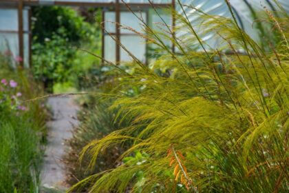 Stipa parviflora es una gramínea ibérica resistente a la sequía, con ligeras y esponjosas inflorescencias que parecen jugar con el viento