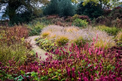 Jardín de muestra con borduras de plantas vivaces ideado para inspirar y aconsejar a quienes lo visitan en el diseño, plantación y cuidado de su jardín.