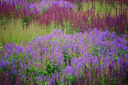 Con espigas de flores en diferentes tonos de azul durante en verano y principios de otoño, los híbridos y cultivares de Salvia nemorosa forman un grupo de salvias resistentes ideales para jardines de estilo naturalista y de vida silvestre.