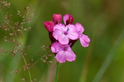 Dianthus carthusianorum, o clavel cartujo, destaca por sus elegantes tallos largos coronados de pequeñas flores de color magenta, morado o rosa
