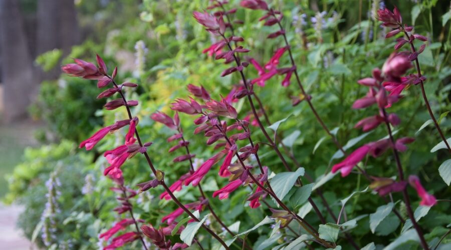 Una salvia de porte erguido, con prolongada y profusa floración en tonos color púrpura rojizo y burdeos, excelente para cultivar en el jardín y, también, en macetas.